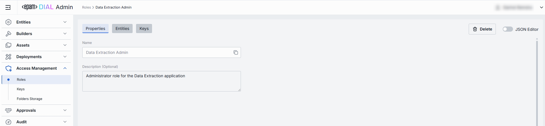 In the Properties tab, you can define the identity and metadata for the role. These settings determine how the role appears throughout DIAL and help administrators understand its purpose.