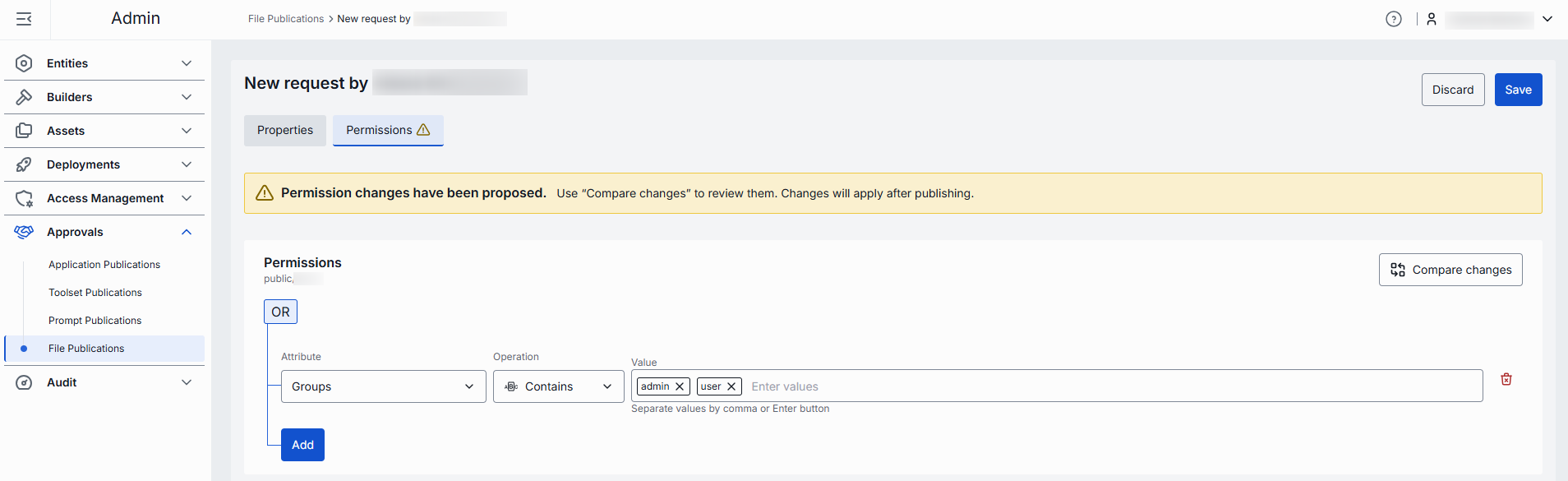 In this section, you can see and modify access rules if they apply to the selected publication request.