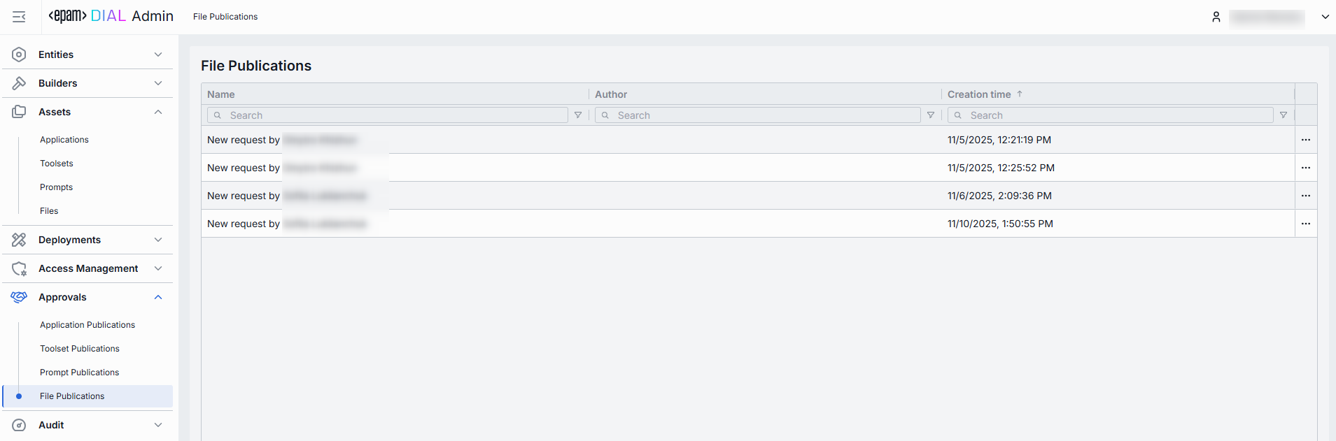 Files from approved requests are available in Assets/Files. Published files can be unpublished by DIAL admin or other DIAL users.