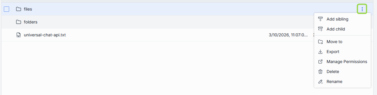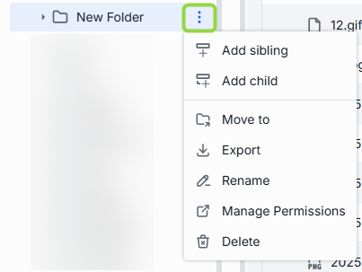| Manage permissions | Redirects to Folder Storage to manage access to the folder. |