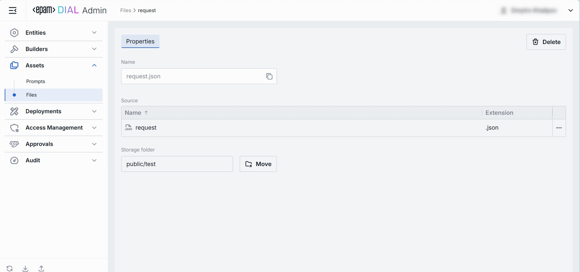 - Delete: Permanently removes the selected file from your DIAL instance.
