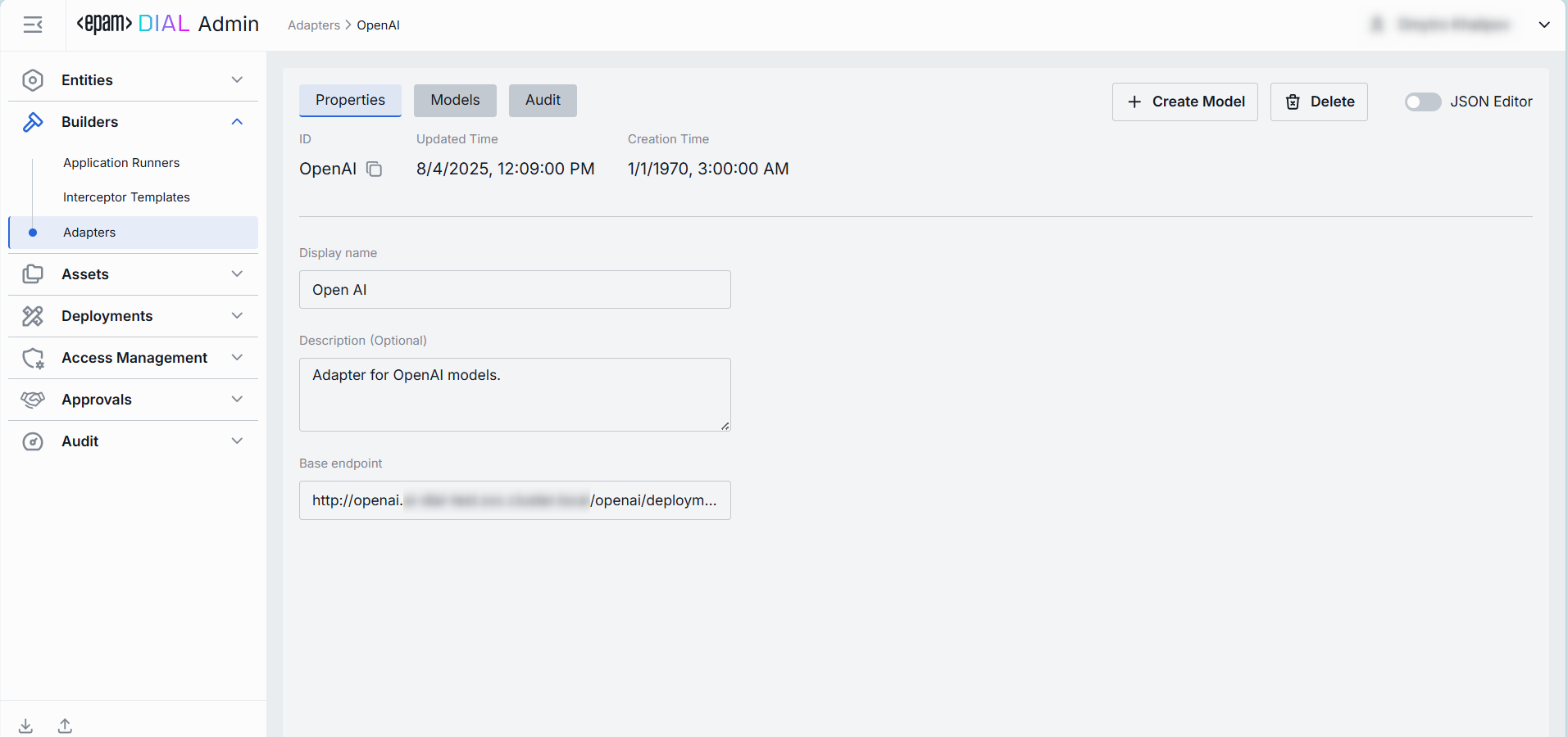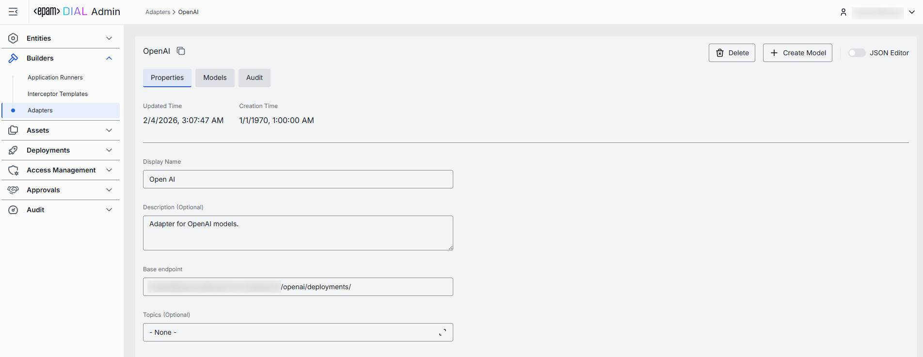 - Delete: Use to remove the adapter itself and all models utilizing it. After confirmation - the adapter and all related models are deleted.
