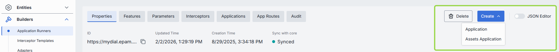 - Navigate to Builders → Application Runners, then select the application runner you want to edit.