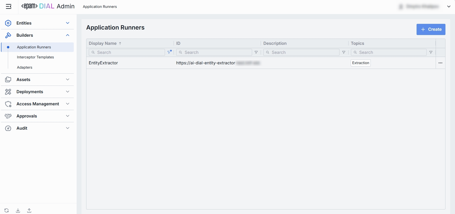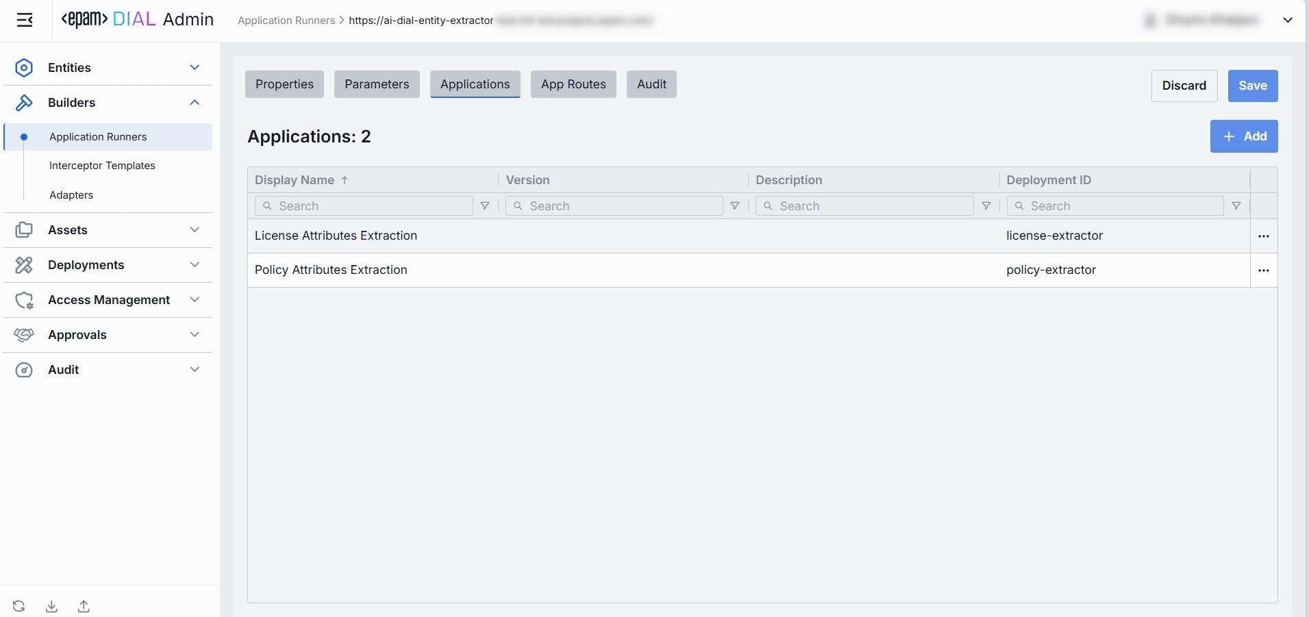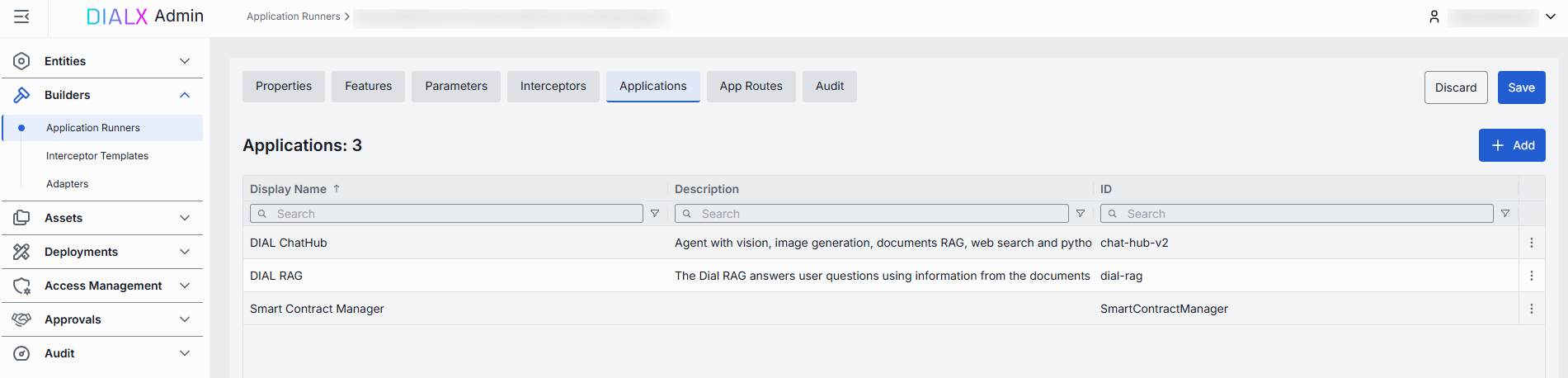 In Application Runners, you can add and manage Application Runners you have in your DIAL instance.