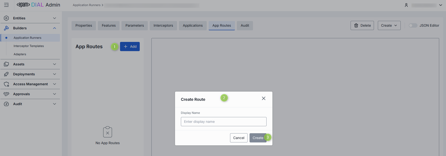 In the App Routes tab, you can manage application runner-specific routes. Here you can create, view, edit, and delete routes.