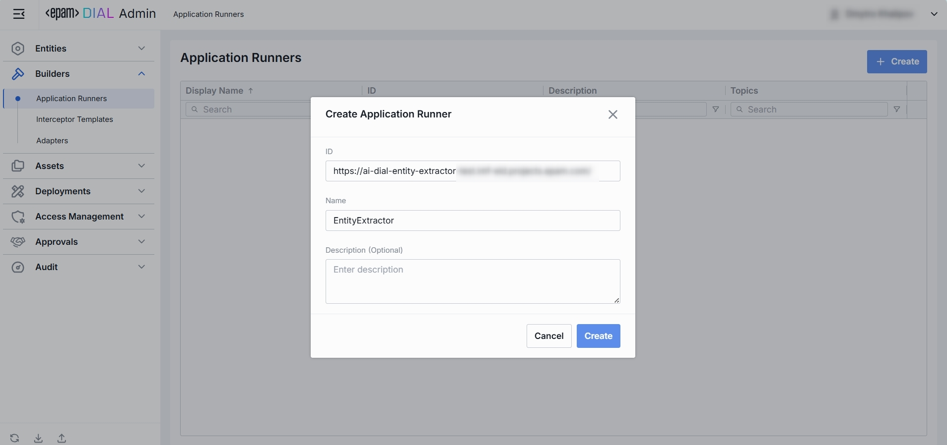 ID | The unique identifier for this runner—typically the base URL of the service (e.g. https://my-runner.example.com ). DIAL Core uses this endpoint to POST orchestration payloads. |