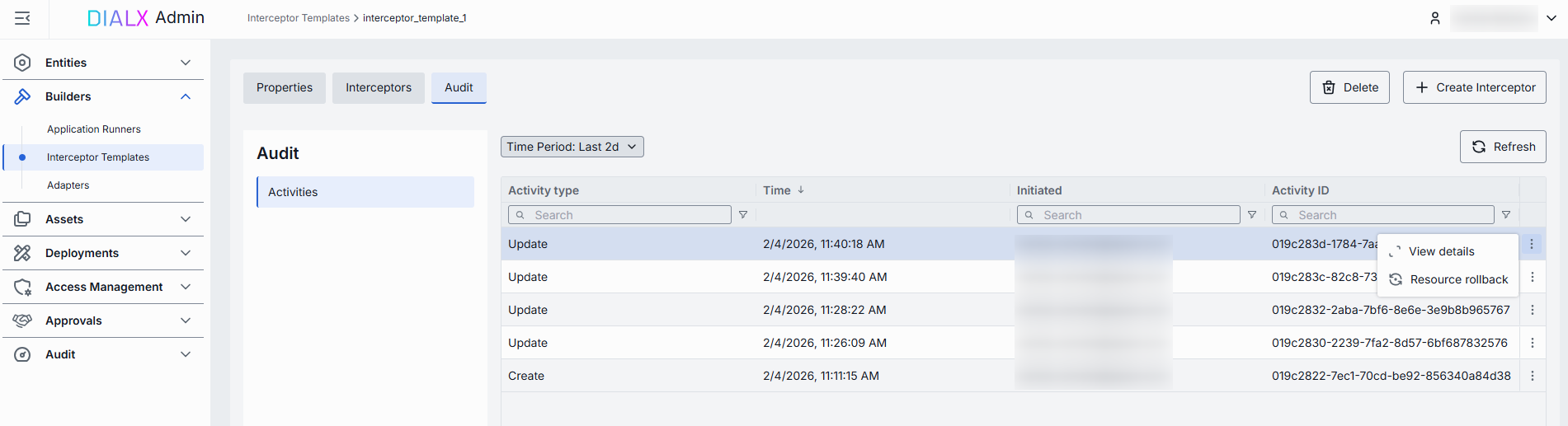 - Delete: Permanently removes the selected interceptor template. IMPORTANT: All related interceptors still bound to it will be deleted as well.