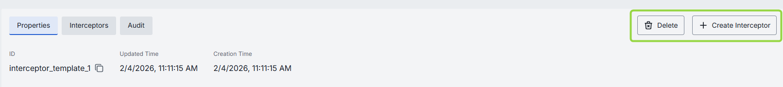| ID | - | No | Unique ID of the template (copyable). Cannot be changed after interceptor template is created. |