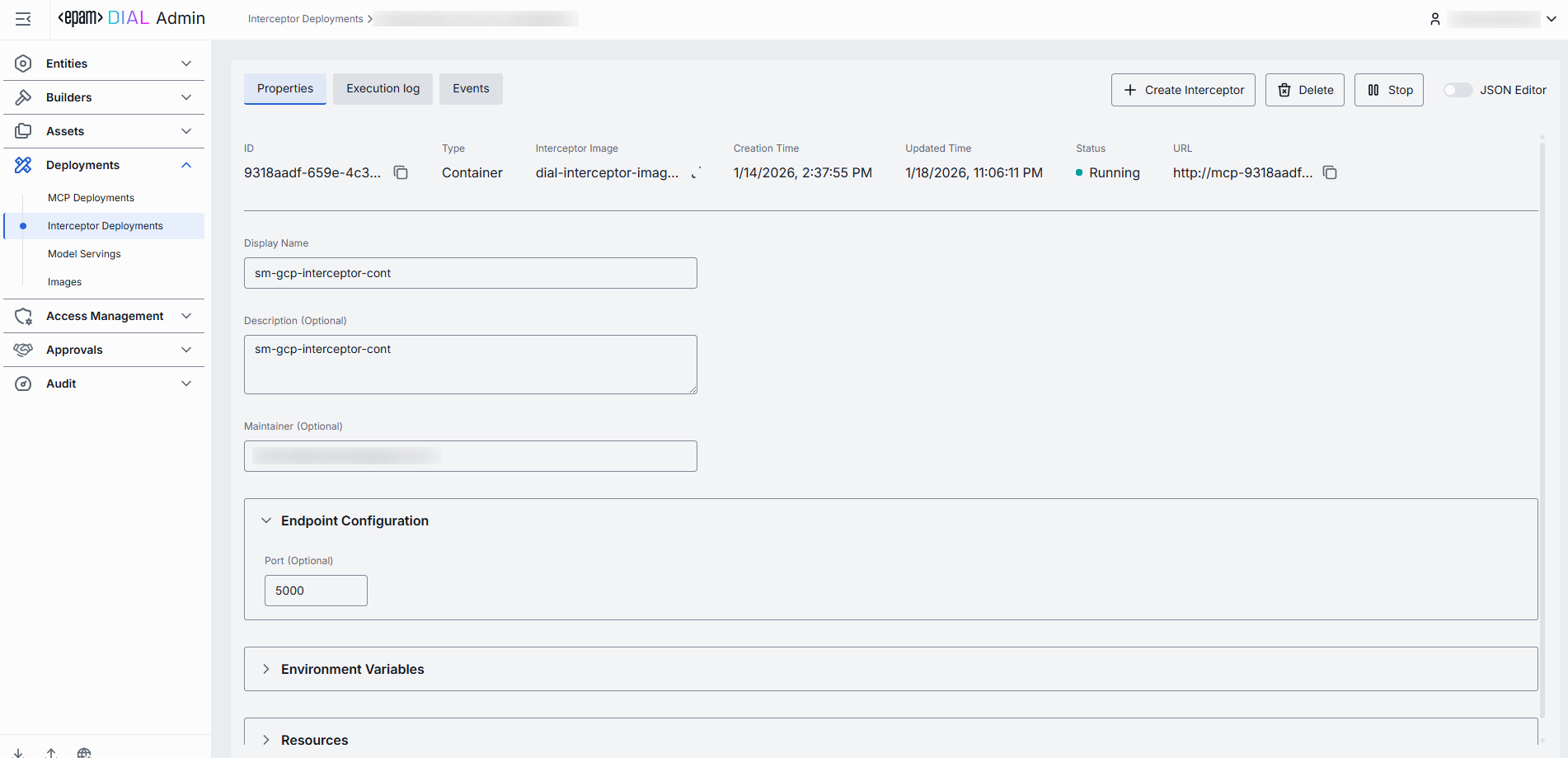 | Endpoint Configuration | No | Yes | Configuration details for the endpoints exposed by the interceptor container. |