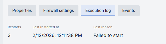 | Restarts | - | No | Restart counter for launching containers. You can find details in the Execution Log. |