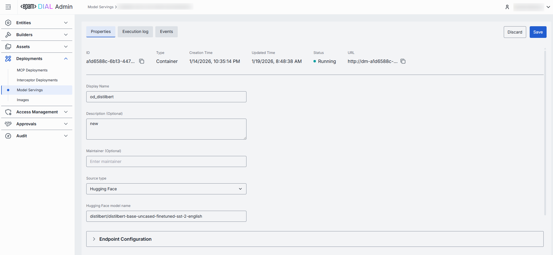 - ID: Unique identifier for the model deployment.