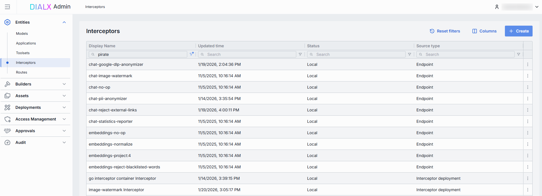 In DIAL, you can create and use templates to add interceptors, create interceptors based on images deployed in DIAL or third-party systems.