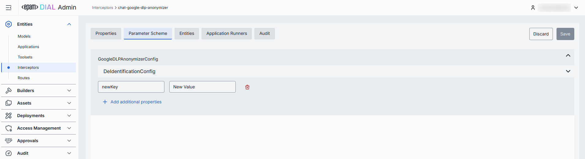 | Configuration Endpoint | Conditional | Yes | The URL that exposes the configuration of the interceptor. This endpoint returns JSON schema with configuration parameters that are rendered in the Parameter Scheme tab. Applies for the External Endpoint source type. |