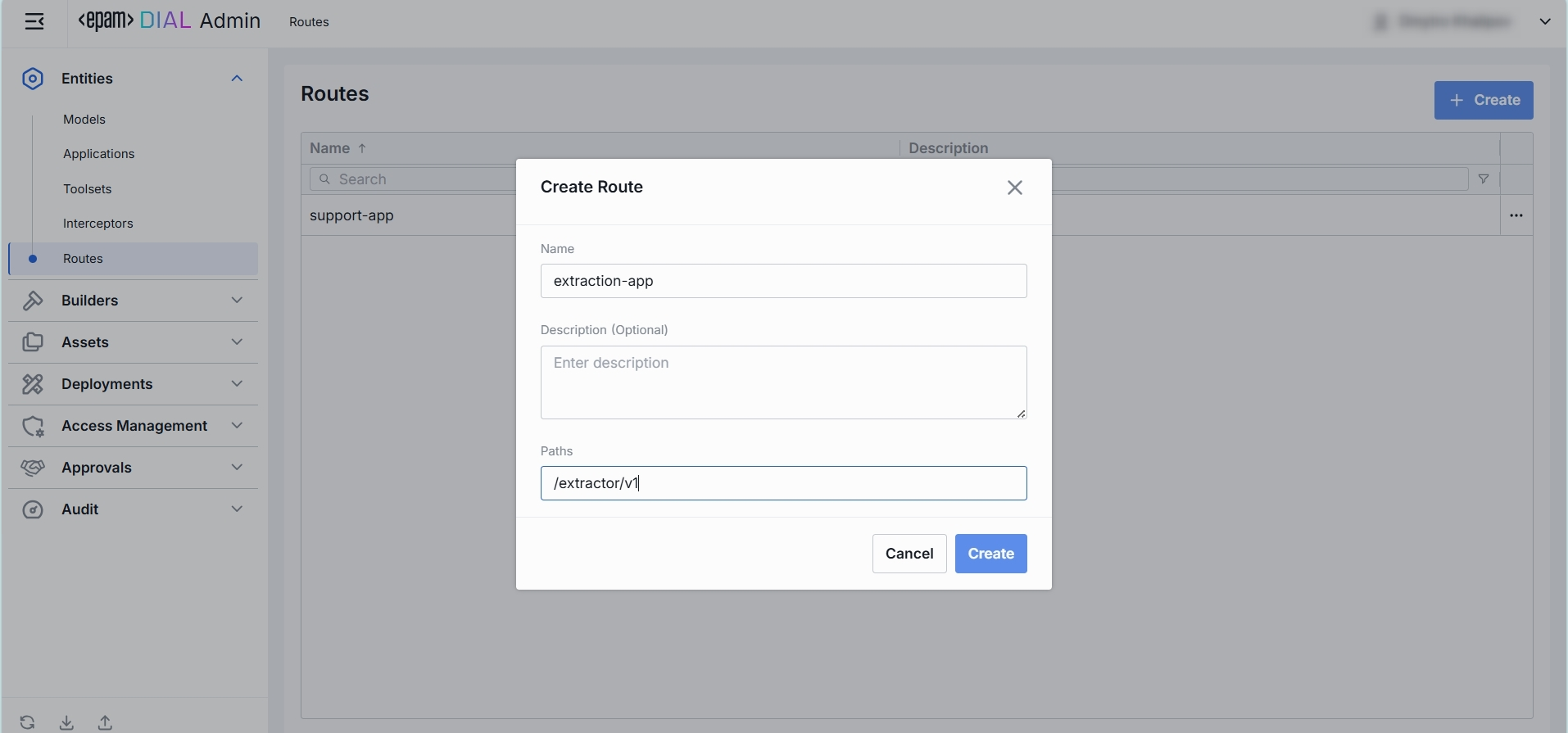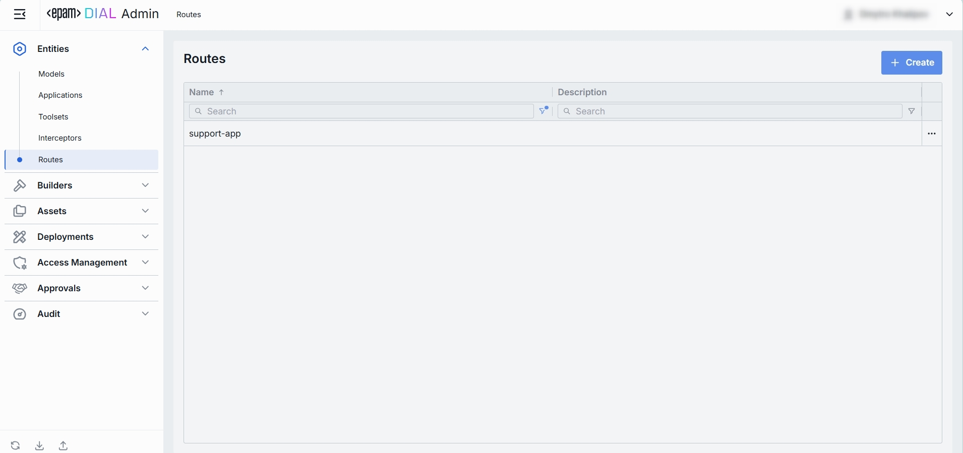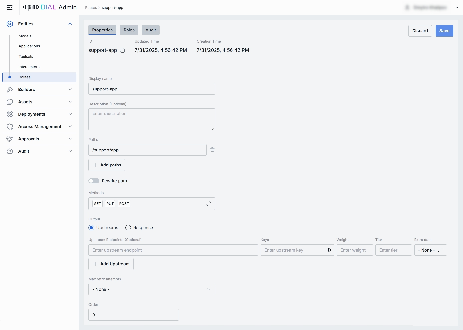 - Navigate to Entities → Routes, then select the Route you want to edit.