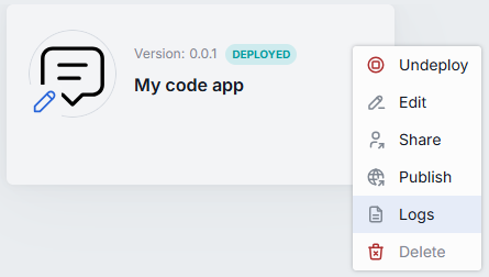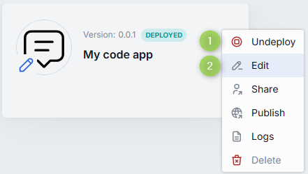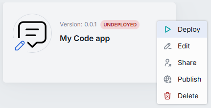 - Click the app you want to undeploy/deploy. Refer to Launch Code App to learn more.