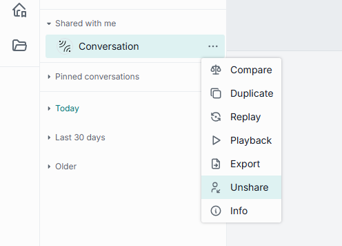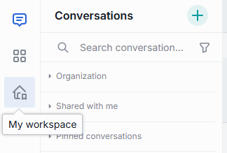 - Conversations: Here, you can access and manage your conversations. You can collapse and expand the panel by clicking the Hide panel icon above it.