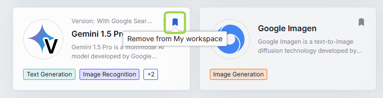 - Prompts: In this section, you can work with prompts: create new templates, update them, and organize them in folders. You can collapse and expand the panel by clicking the Hide panel icon above it.
