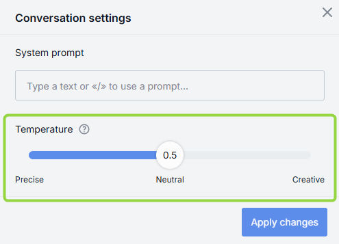 Before you begin a new conversation, click Configure settings in the main chat area to invoke the Conversation settings window.