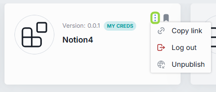 - Select Unpublish in the actions menu of the selected application and fill in the request form.