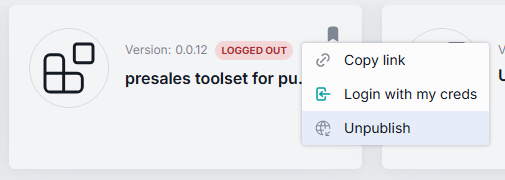 - Select a prompt and click Unpublish in the actions menu and fill in the request form.