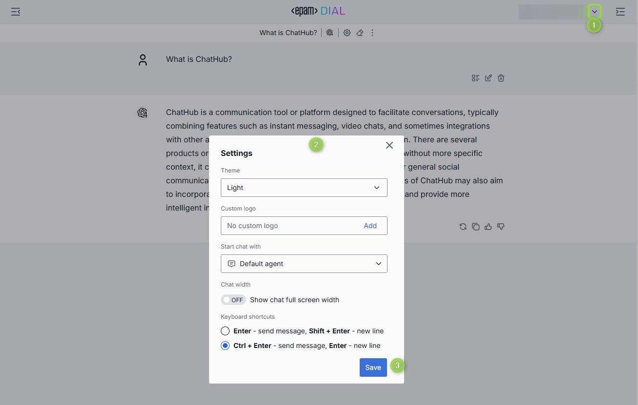 NOTE: this user guide covers the functionality of a standard DIAL Chat UI.